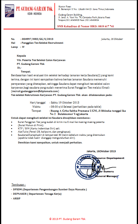 Contoh surat lamaran pekerjaan pt gudang garam yang kami berikan ini. Sehingga berkas kita di proses lebih lanjut oleh pihak perusahaan. Admin blog berbagai bentuk lamaran 2019 juga mengumpulkan gambar gambar lainnya terkait contoh surat lamaran kerja di pabrik rokok gudang garam . Hingga kini gudang garam sudah terkenal luas baik di dalam negeri maupun mancanegara sebagai penghasil rokok kretek berkualitas tinggi. Contoh surat lamaran kerja di pt gudang garam dapatkan contoh.